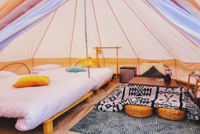 Советуем остановиться в Nordisk Village на острове Фукуэ — глэмпинге в скандинавском стиле. Он сочетает в себе лучшее, что есть в кемпинге, с комфортом отеля. В шатрах есть кровати и другие удобства, а выйдя наружу, сразу же окунётесь в красоту острова. Здесь есть кафе, ресторан и отдельные комнаты в здании старой школы.